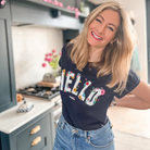 Navy Organic Cotton Floral Hello T-Shirt