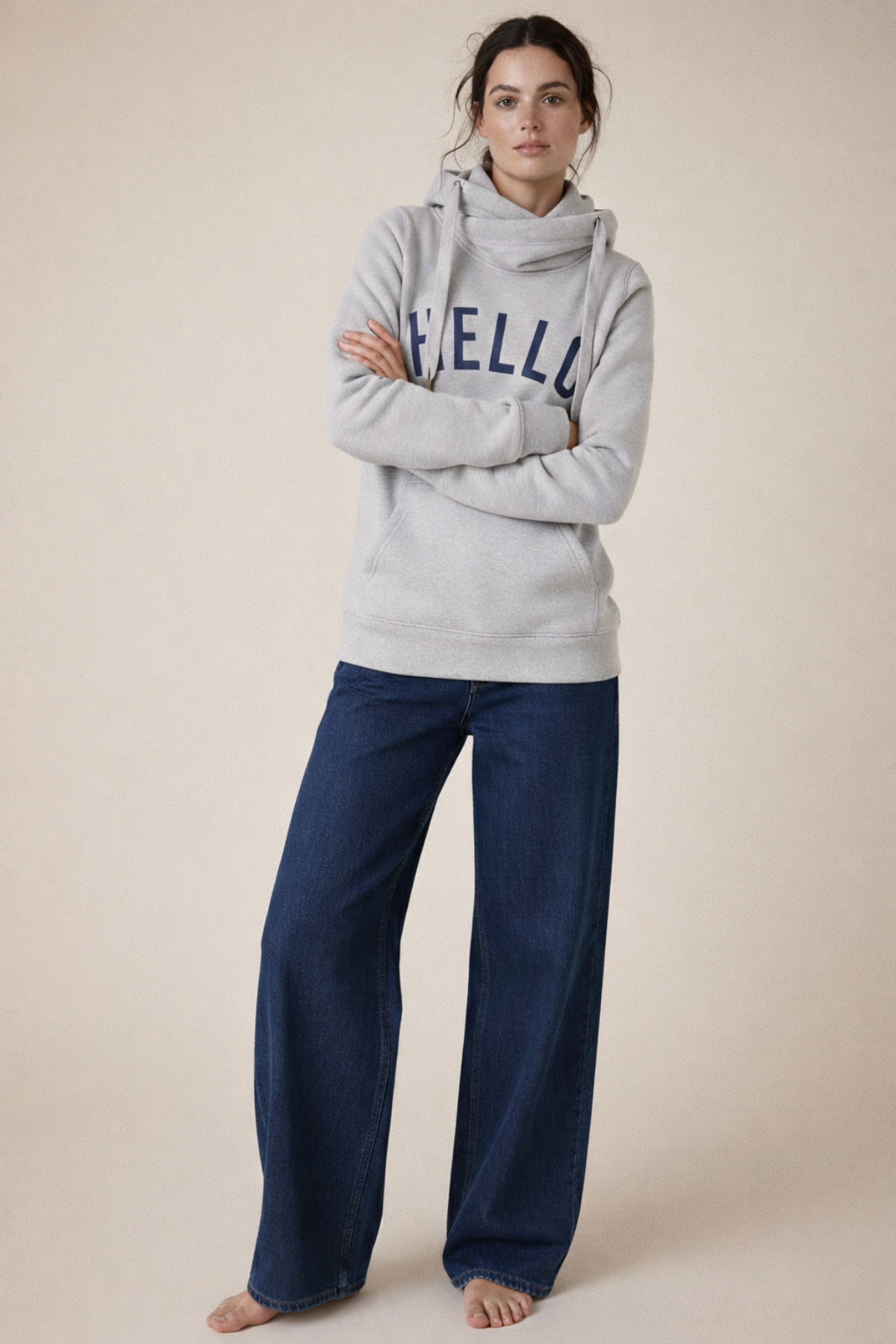 Hello Cowl Neck Hoodie in Grey/Navy