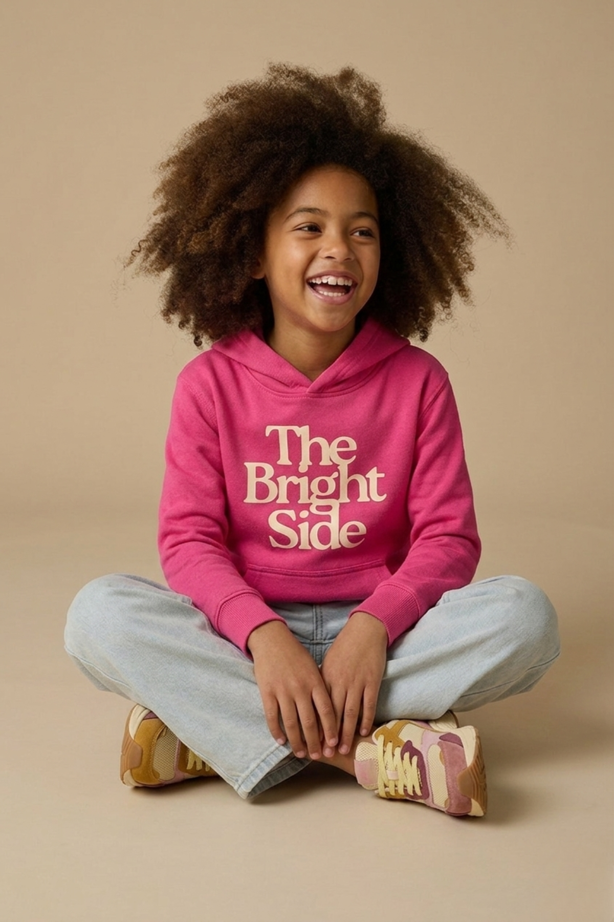 A cosy little hoodie with a big, happy message. Our Kids Bright Side Hoodie in Candy Pink is made for bright personalities, big smiles and everyday comfort.
