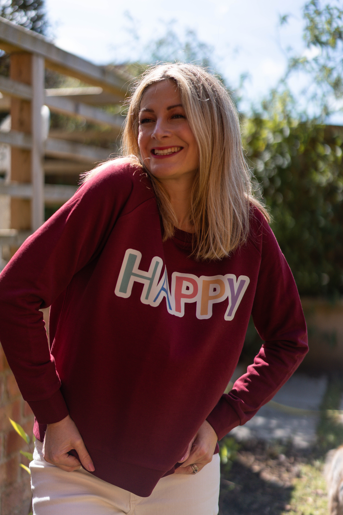 Burgundy Cherry colour raglan sweatshirt. Terry Loopback Cotton. Lightweight. Feminine wide neckline.
