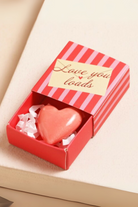 In a candy-striped box in red and pink, the cute heart-shaped token is glazed in red and sits nestled amongst paper stuffing, ready to remind them how adored they truly are.